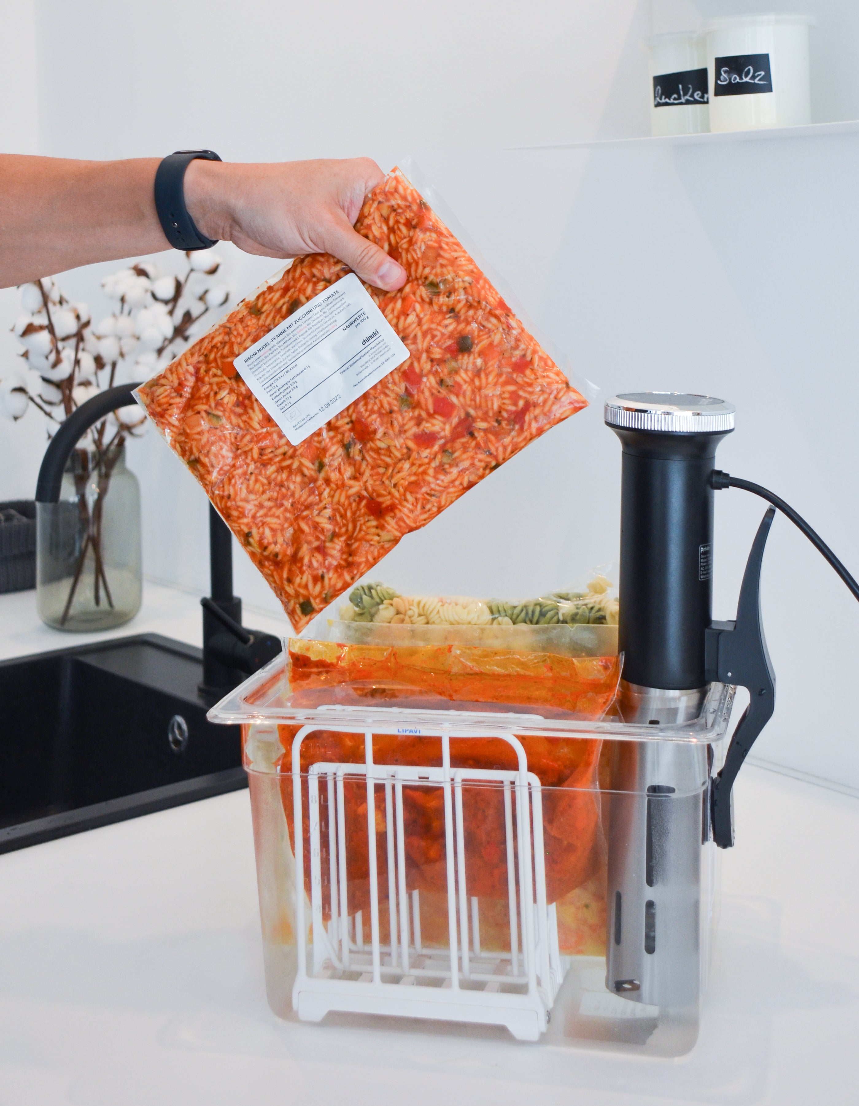 Unsere Empfehlung an dieser Stelle sind unsere Sous-Vide Geräte inkl. Wasserbecken zu Ihrem Paket dazu zu buchen. Hier finden Sie weitere Informationen.